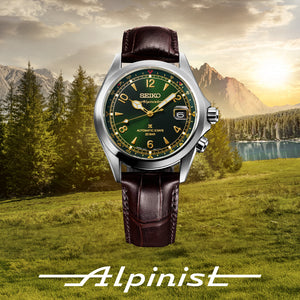 The Seiko Prospex Alpinist SPB507J is a refined expression of the adventurous spirit, blending rugged functionality with elegant design. Its forest green dial is deep and sophisticated, brought to life by gold-tone Arabic numerals and polished hands treated with Lumibrite for exceptional visibility in low light. This interplay of earthy tones and metallic warmth creates a dial that is both captivating and highly legible.