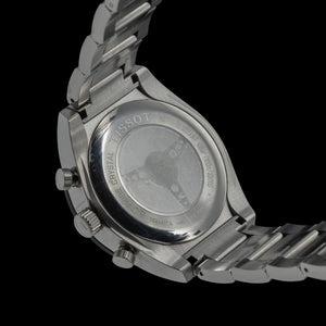 This model is powered by a Swiss quartz chronograph movement, offering precision timekeeping and stopwatch functionality with minimal maintenance.