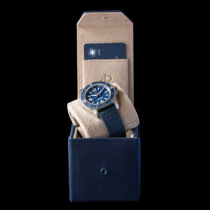 The watch boasts a vibrant, beautiful blue dial with oversized luminescent markers and hands, ensuring optimal visibility in any environment. Its unidirectional rotating bezel, combined with reliable automatic movement, provides precise timekeeping and durability that meets the highest standards of professional divers.