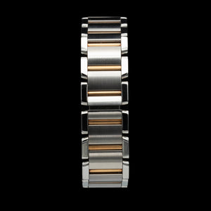 With its 20 mm case size, this watch offers an easy fit on the wrist, exuding a graceful presence that is both understated and sophisticated. The two-tone bracelet, seamlessly integrating stainless steel and gold, adds a dynamic contrast that enhances the watch's overall aesthetic.