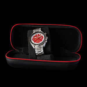 One of the most striking variants of the Speedmaster Reduced, the Ref. 3510.61 stands out with its vivid red dial — often nicknamed the “Michael Schumacher” edition after the F1 legend who was an Omega ambassador. With motorsport-inspired styling, a wearable 39mm case, and automatic chronograph movement, it offers a bold, colourful take on a classic silhouette.