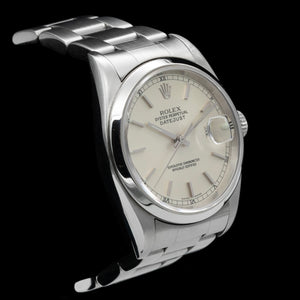 Introducing the 2004 Rolex Oyster Perpetual Datejust. Crafted with Rolex's legendary precision and enduring style, this timepiece boasts a 36mm stainless steel Oyster case, a hallmark of durability and sophistication.