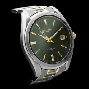 Not much more to ask for with this watch. Nicely sized at 40mm with a titanium two-tone case and bracelet and vibrant green dial.