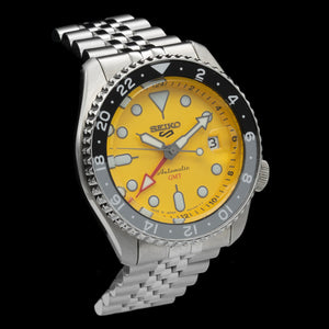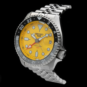 One of Seiko's most exciting releases of 2023, this vibrant yellow watch takes the excellent wearability of the venerable SKX case and adds a hugely useful GMT hand, allowing the user to track three time zones simultaneously.