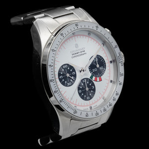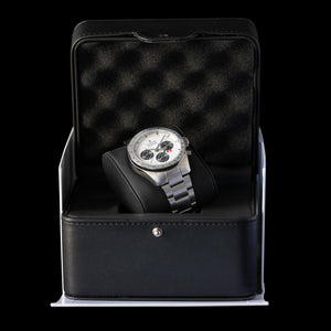 The matte white dial with the splash of colour on the subdial, this yachtimer is evocative of the past but it also has quite a clean uncluttered, modern feel to the overall package.