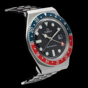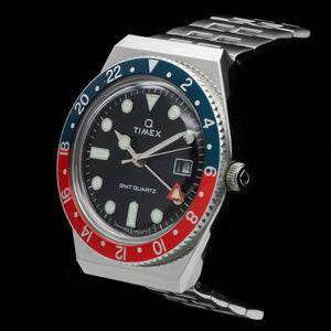 The Q range harks back to the brand's earliest efforts with quartz movements. The design for this new technology had to mark a clear shift from the Timex of old and so this sleek style with integrated bracelet was presented. The retro-inspired design, of the Timex Q 'Pepsi' GMT merges style and practicality seamlessly.