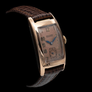 This American beauty hails from 1940, and features design language strongly associated with the Art Deco movement. The curved Gold plated case wears very well for its size and makes for an excellent dressy timepiece.